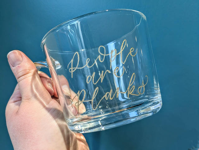Personalised glass mug engraving make a lovely gift for birthdays, anniversaries, Mother's Day or Valentine's Day!