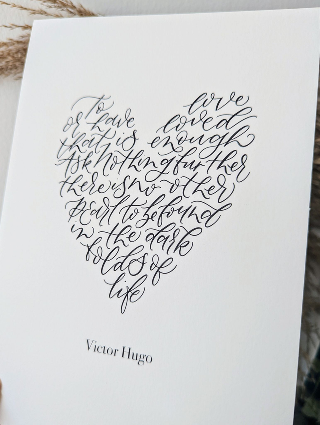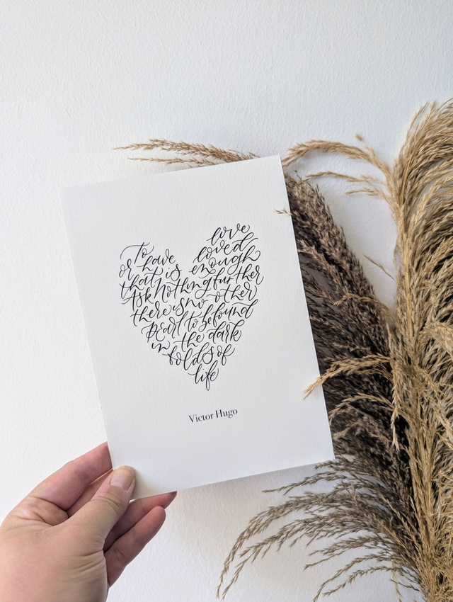 A5 print. Designed and lettered by hand into a heart shape and printed onto 300gsm cardstock.